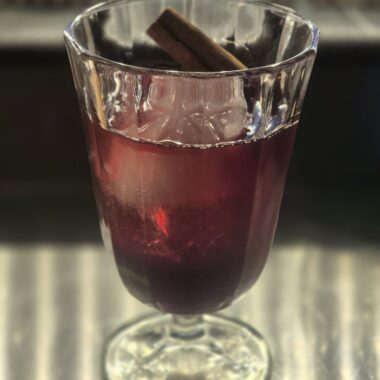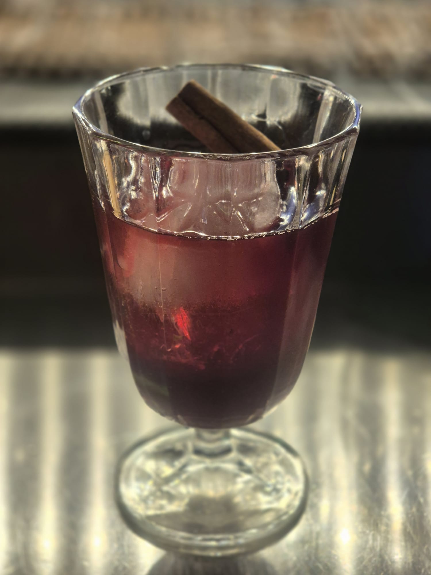 Ingredients: Bairnsfather absinthe, Nordbrand Saurer Apfel liqueur, Mattei Corse quinquina blanche fortified wine, Amaro dell’Etna, few drops of carolina reaper gin-based concentrate, garnished with a cinnamon stick