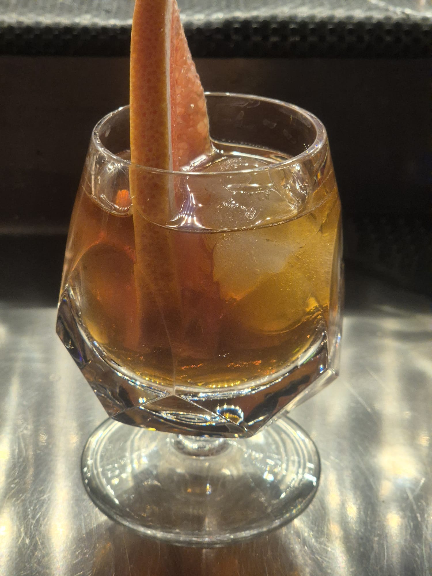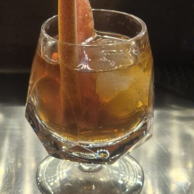 Ingredients: Linie aquavit, Mattei Corse blanc quinquina, Satyr aphrodisiac cardamom aperitif, Giffard d’Espelette chili liqueur, grapefruit bitter, garnished with a fresh grapefruit slice